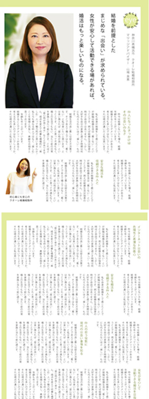 女性向けの女子力アップ雑誌「splende」に、現代の婚活事情や、女性の社会進出にともなう「出会いのなさ」、これからの結婚相談所が担う役割などについてのインタビューを掲載していただきました。